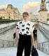 Solid cable knit short sleeve sweater top featuring bow embellishment at front. Unlined. Knit. Non-sheer. Lightweight.